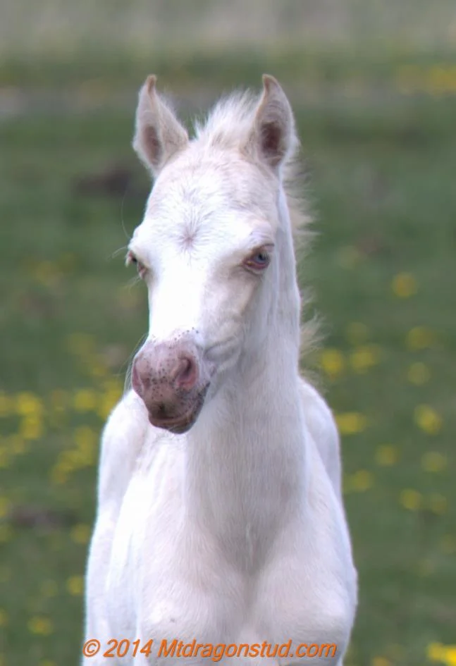 Evans Liliwen (Clanfair Mirabeau x Evans Tiger Lily by RWAS *Wedderlie Maradonna) a Cremello Filly. This is just a darling filly! She carries three crosses to Royal Welsh Producer Eyarth Beau Geste ~ through three Royal Welsh Winners ~ *Mynach Mystical, *Wedderlie Maradonna, and *Wedderlie Mardi Gras. Mardi Gras and Maradonna are full brothers.